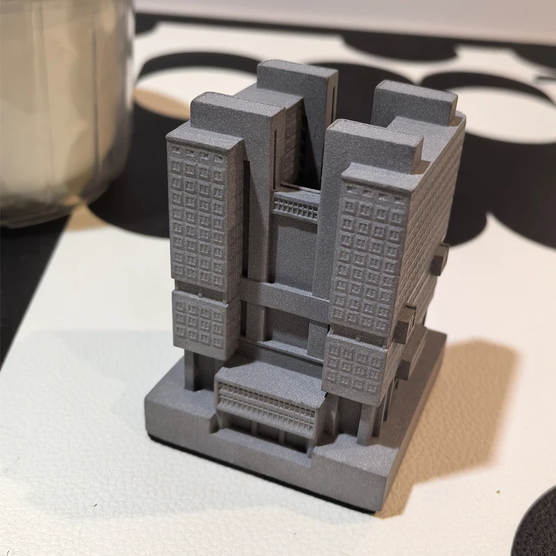 Add bold architectural character to your workspace with this cement micro-architecture pen holder. Designed to resemble a miniature industrial-style building, it brings artistic edge to any desk. The solid cement construction offers durability and a substantial feel. Its detailed façade captures the essence of classic monumental architecture. Perfect for holding pens, pencils, markers, or small office tools, it keeps your workspace organized. The industrial aesthetic pairs beautifully with modern, minimalist, or loft-style interiors. Compact yet eye-catching, it serves as both functional storage and decorative art. The neutral concrete finish complements a wide range of color schemes. Ideal for home offices, studios, or creative workspaces, it adds personality to everyday organization. Elevate your desktop décor with this unique architectural pen holder that blends utility with industrial design.