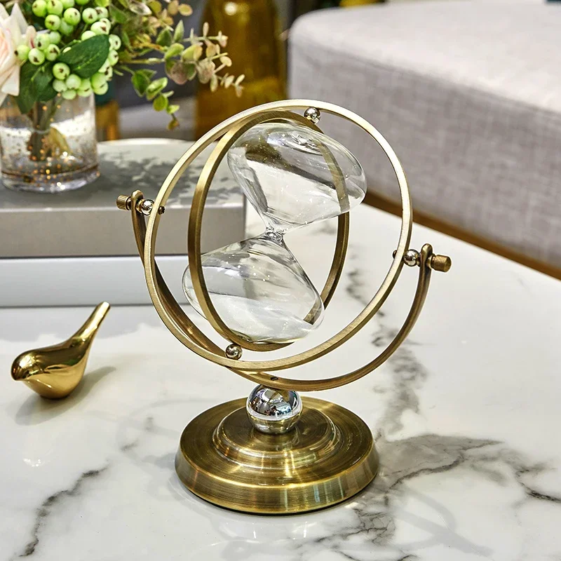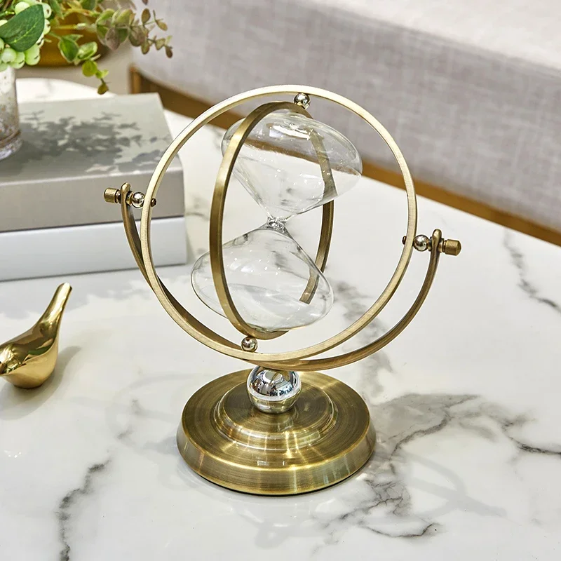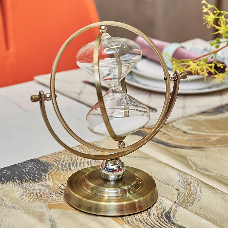 Time, like tide, moves without appeal. The Globe Sand Timer renders its passage in visible measure, recalling the sandglasses once kept in captain’s quarters and observatories. Framed within a globe-inspired structure, its form suggests both the world’s breadth and the discipline required to cross it. Glass chambers hold the falling sand in steady descent, marking intervals with quiet certainty. The surrounding frame, shaped in metal tones, lends weight and composure to the piece. Set upon a desk or shelf, it becomes an instrument of reflection rather than distraction. In a study, it encourages deliberate labor measured in clear spans. In a living room, it stands as a reminder that order is built one moment at a time. Its presence favors substance and restraint over ornament alone. Built for time, made to endure, it serves as a steadfast companion to work governed with command.