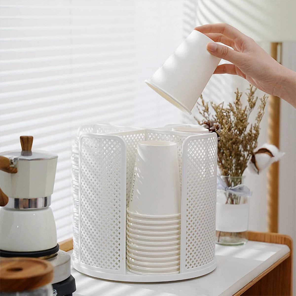 A proper coffee station runs on readiness and order. The Rotating Cup Provision Rack keeps cups and lids aligned and within reach, turning smoothly to bring each stack forward on command. Its vertical design gathers scattered service ware into one disciplined station. Built with a steady central axis, it rotates with controlled motion rather than drift. The structured compartments separate cups from lids, preserving clarity during busy hours. Set upon a counter, it reclaims surface space while maintaining immediate access. In a kitchen or coffee bar, it establishes a defined point of service. In an office breakroom, it brings quiet efficiency to daily routine. Its form is spare and utilitarian, guided by function above ornament. Built for time, made to endure, it stands as a dependable provision for stations kept in good order.
