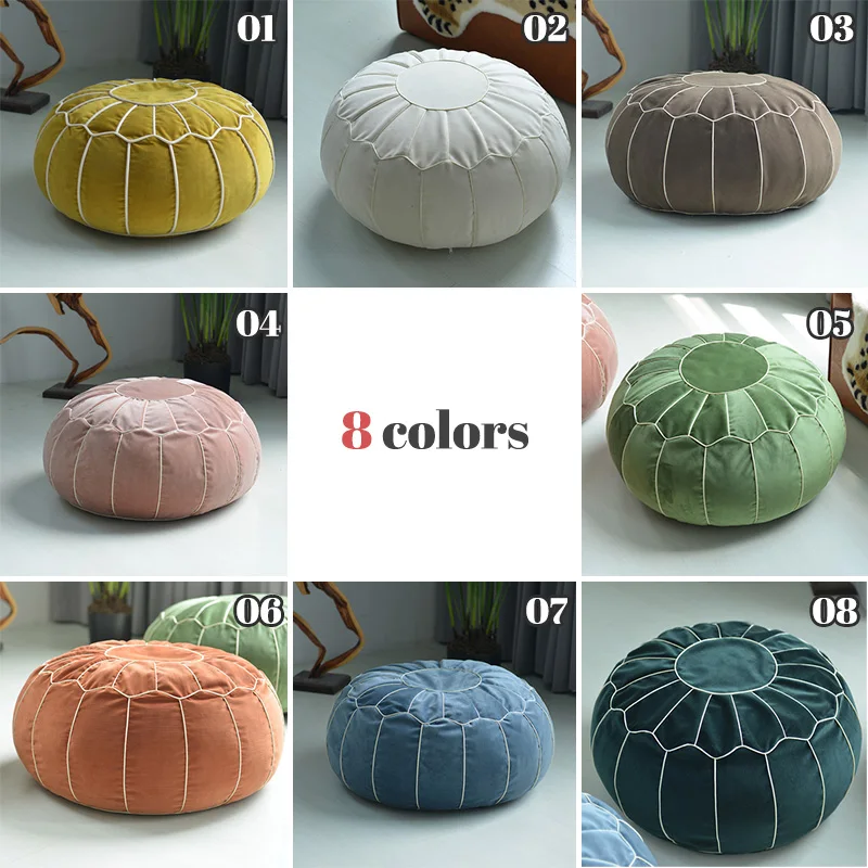 Add a playful yet elegant accent to your home with this velvet embroidered pouf. Designed in vibrant candy colors, it instantly brightens any living space. The soft velvet texture offers a luxurious feel while enhancing comfort. Intricate embroidery details bring Moroccan-inspired artistry to the design. Perfect for use as a footstool, extra seating, or a decorative floor cushion, it blends beauty with versatility. Inspired by Japanese tatami and futon styling, it complements minimalist and boho interiors alike. The round silhouette creates a cozy and inviting atmosphere in living rooms or bedrooms. This unstuffed cushion cover allows you to customize the firmness and fill to your preference. Lightweight and easy to move, it adapts effortlessly to your space. Elevate your décor with this creative pouf that combines global inspiration with modern comfort.